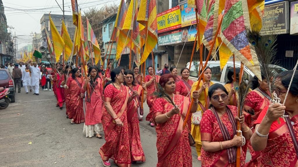 रानीगंज। देवनगरी रानीगंज में श्री श्याम मंदिर के द्वितीय स्थापना उत्सव एवं श्री श्याम बाल मंडल के 41वें वार्षिक महोत्सव के अवसर पर भव्य त्रिदिवसीय आयोजन का शुभारंभ भक्ति और उल्लास के साथ हुआ। प्रथम दिन श्री सीतारामजी मंदिर प्रांगण से ध्वज-निशान शोभा यात्रा निकाली गई, जो नगर परिभ्रमण करते हुए नवनिर्मित श्री श्याम मंदिर पहुंची। यात्रा में बंगाल की महिलाओं द्वारा ढाक वादन, राजस्थान के सुप्रसिद्ध ढप की सुरीली भजन प्रस्तुति तथा उज्जैन से पधारे कलाकार के डमरू-नाद ने वातावरण को भक्तिमय कर दिया। जय श्री श्याम के जयघोषों के बीच भक्तों ने रानीगंज की परिक्रमा की। मार्ग में जगह-जगह सेवा शिविर लगे, घर-घर से पुष्पवर्षा कर स्वागत किया गया। हजारों की संख्या में श्रद्धालुओं ने श्री श्याम के दर्शन किए। प्रथम दिन पूरे नगर में ऐसी भक्ति की छटा बिखरी कि रानीगंज वृंदावन और खाटू धाम में परिवर्तित प्रतीत हुआ।